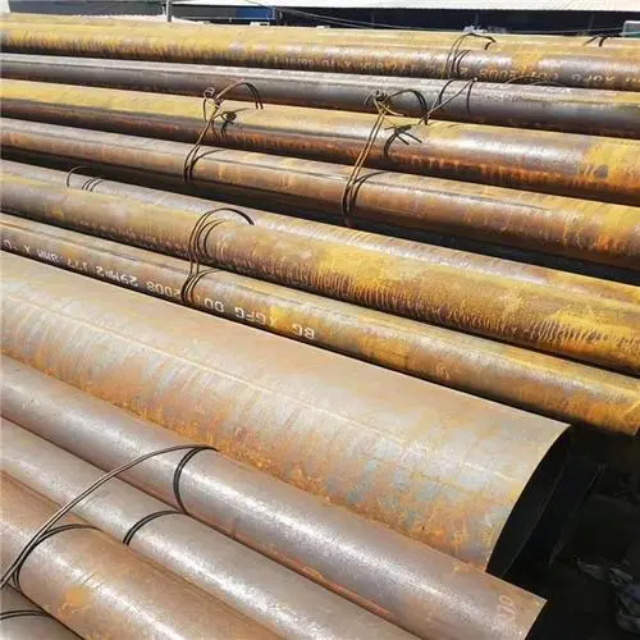 商洛gb3087无缝钢管要用钢锭或实芯管料经破孔制成毛管,随后经热扎、冷轧或冷拨制成。商洛gb3087无缝钢管在中国钢管业中具备重要的位置。据不完全统计,我国目前无缝管生产公司约240多家,无缝管机组约250多套,年产能力约450多万吨。从规格看,商洛gb3087无缝钢管的原料是圆管坯,圆管胚要经过切割机的切割制作成长短约为1米胚料,并经输送带送至溶炉内加温。钢坯被送进溶炉内加温,温度约为1200℃。燃料为氢气或乙炔。炉内温控是关键性的难题.圆管坯出炉后要经过压力穿孔机开展穿空。一般较常见的穿孔机是锥形辊穿孔机,这类穿孔机生产效率高,产品品质好,破孔扩径量多,可穿多种钢种。破孔后,圆管坯就先后被三辊斜轧、连轧或挤压。挤压后应脱管定径。定径机根据锥形钻头高速运转入钢胚打孔,产生钢管。钢管内径由定径机钻头的直径长短来决定。钢管经定径后,进入冷却塔中,根据喷水冷却,钢管经冷后,就要被校直。钢管经校直后由输送带送往金属探伤机(或压力试验)进行内部探伤。若钢管内部有裂痕,气泡等问题,将被检测出。钢管质检后还要通过严格手工选择。钢管质检后,用漆料喷上编号、规格、生产日期等。并由吊车吊入仓库里。